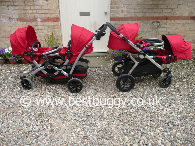 Also with the City Select it is very difficult to know where the front of the pushchair is if the front child is facing forwards. I never felt confident, particularly in shops with displays, in having my eldest at the front as I had no idea where her legs were. But with the Contours its easy to see where the front wheel is when you look down the side which gives you a good idea where the front is.