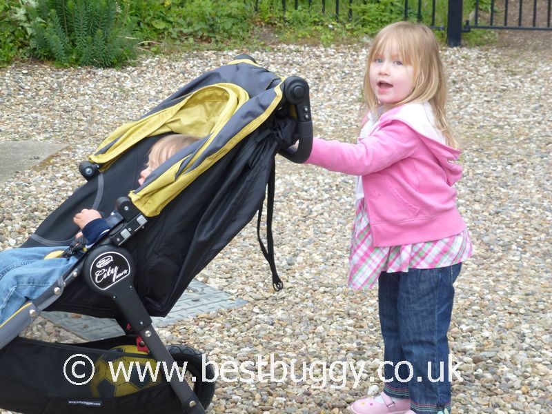 Just a few photos of our 3.7 year old pushing her brother in the Baby Jogger City Mini GT. I felt confident enough that the City Mini GT was stable and easy enough for her to push.