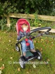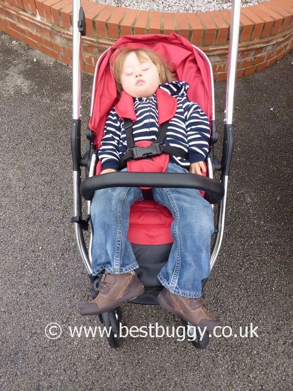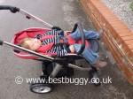 My only critcism of the upper seat is that when a child is sleeping – the leg support is relatively short. Our 26 month old could only just nicely keep his legs on it and his feet were hanging over. It would have been useful to have a built in footrest ‘shelf’ within the frame of the seat, like say on the Musty Evo or the Baby Jogger Versa, for a younger child to be able rest their feet when the footrest is down.