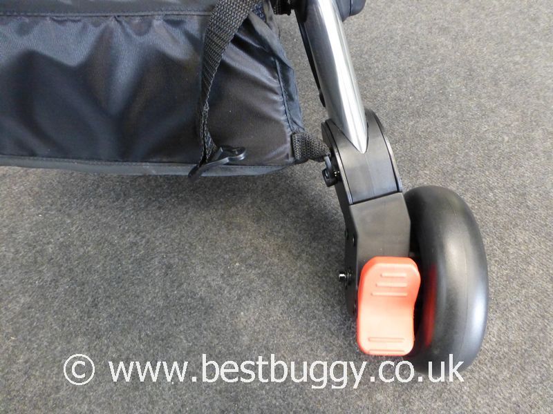A storage strap has been added to hold the Oyster Gem closed when folded. This is great news for anyone who needs to carry the Oyster Gem upstairs or onto a bus. The strap simply pops over a rivet near the handle. We felt that the strap probably could have done with being a little shorter, but there was probably a reason for the length that it is. There is also a velcro tab on the storage strap. This corresponds to a velcro tab underneath the basket to keep the storage strap out of the way and so that it doesn’t dangle. We very much welcome the addition of the storage strap.