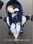 There are two harness height settings. Master BB has the harness on the upper setting. There are harness pads, however there is no buckle /crotch pad. This may seem like a minor detail, but the harness on the Vue has sharp points and rough edges which dig into small tummies – no problem in winter, but in summer, this is an issue for us, especially as the buckle of the Bubble cut my finger. Personally we would like to see these buckles never used. This buckle is also used on the Bubble and on the Baby Jogger Lite. However on these two pushchairs there is a buckle pad to afford the child protection. We would like to see Baby Jogger add a buckle pad onto the Vue.
