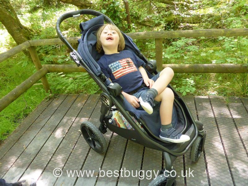 Our first impression of the Baby Jogger City Premier was relief! Why? We were driving en route to Wales when we got a phone call to say our Premier was ready to be picked up! We happened to be passing the warehouse, and the weekend away was the perfect opportunity to try the Premier out…….but the car was packed solid! We decided to pick the Premier up en route, and thankfully, once out of the box, with a bit of rearranging, the Premier slid easily into our boot. This is one of the reasons we love Baby Joggers so much – they are very easy to live with, and no matter how full your car is, you can always slide one in somewhere! We got a closer look at the Premier once we arrived in Wales, and initial impressions were great: beautiful fabrics, sturdy smart black chassis and a spacious seat.